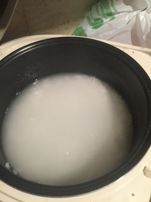 大米洗干净,倒入多功能锅,水也加进去