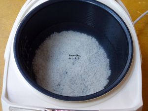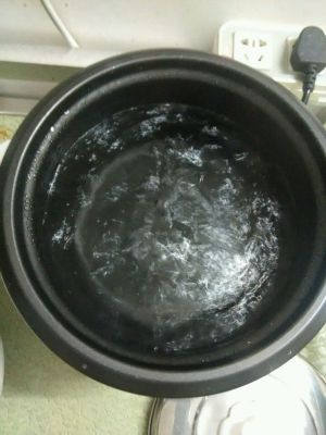 把浸泡好的大米放入锅中,加适量水,按煲粥键;