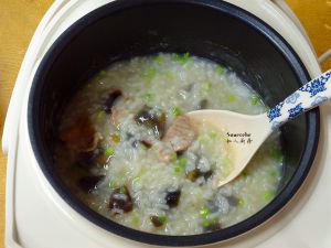 淘米,加水,用压力锅煮一锅白粥。没有压力锅也可以用电饭煲,一般上面都有煮粥的功能键。如果希望粥更粘稠的话,有个小秘诀,就是在煮粥的水里加一点小苏打粉,不用很多,放一点点就好。这样熬出来的粥就会又香又稠啦!