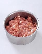 将用淀粉,酱油,盐,糖腌制好的肉放入锅中煮熟,煮好后倒入装菜容器