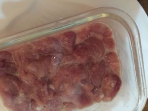 肉片用淀粉,鸡蛋一个只要蛋白,加少许水抓匀!