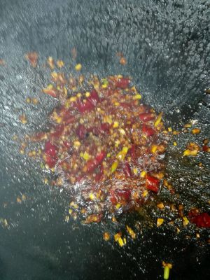 差不多可以放一点水,闷一下然后在翻炒,这时加入五香粉和花椒粉,在加点味精,翻炒……