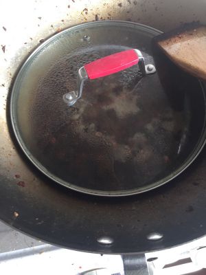 这一步 你如果不怕麻烦 可以再锅里面加水 加到刚刚在鸡肉水平这么高之后 闷起来 为的是让辣酱更入味 。你急的话 就不要这一步 直接起锅吧
