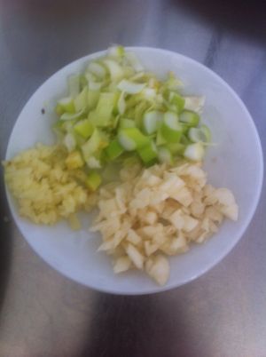 葱姜蒜切好,一勺郫县豆瓣酱待用