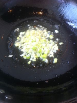 因为淀粉会粘锅,建议把锅刷洗干净,重新到底油加热!(也可无把刚才炒肉的油二次使用)油热后加入葱姜蒜末和郫县豆瓣酱!