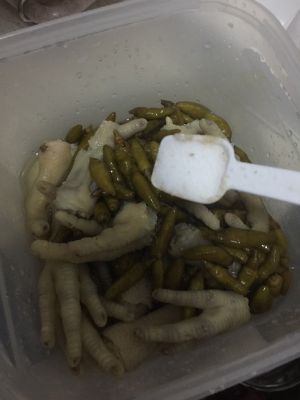 把煮好的凤爪浸在盐水里,放冰箱泡两天,即可开吃