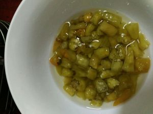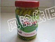 然后把超市买的泡椒罐头加入姜蒜还有醋,醋到了一半多大概三分二