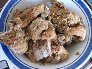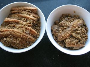 腌制后,加少量橄榄油搅拌均匀放入米粉包,让米粉均匀裹在肉外。上锅蒸。大火水开后,小火蒸30~40分钟即可。