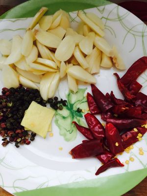 姜,蒜,花椒,辣椒剪寸段,准备妥当