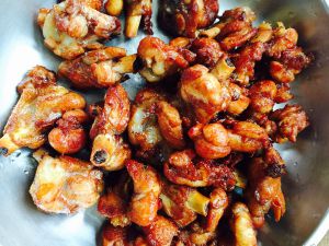 鸡肉切小块,(鸡块不要太大)加盐、鸡精、白酒、辣椒面。腌制1-2个小时。