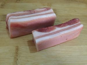 把猪肉洗净,切块著半小时,凉干,切片待用。