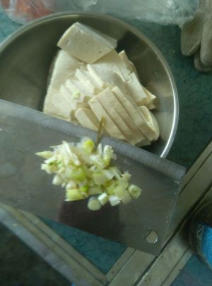 葱姜蒜切沫,豆腐切大点的豆腐块或者丁
