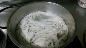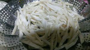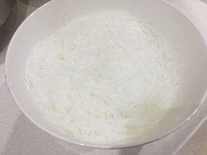 粉丝开水煮软后泡凉水或直接泡水到软。