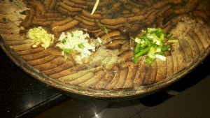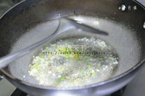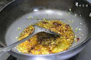 起锅热油,加入蒜姜煸炒,加入豆豉酱爆香