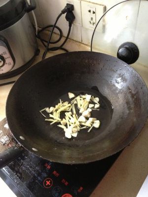 蒜姜下锅小火翻炒出香味。电磁炉我用了两格炒菜模式。