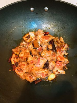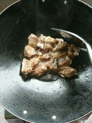 加入腌制好的排骨继续翻炒,喜欢香一点的,翻炒时间可以稍长一点。