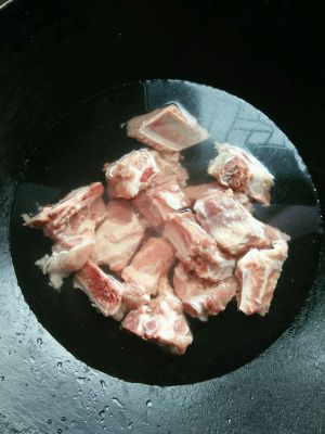 排骨清洗干净。冷水入锅,飞水后洗去血沫沥干水分。