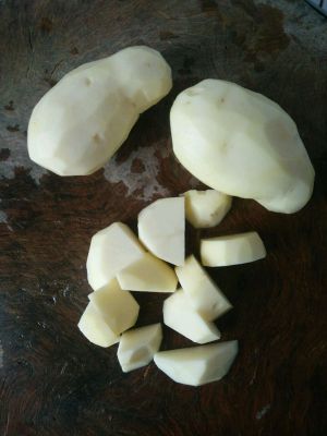 排骨砍成三厘米的段,土豆切成块,备用