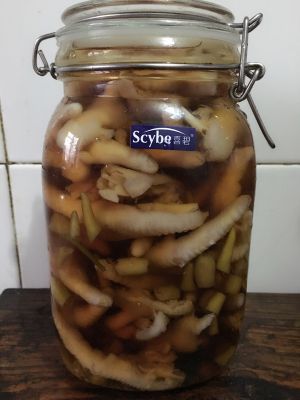 3:倒入凉好的凤爪,放冰箱两天后就可以吃了。