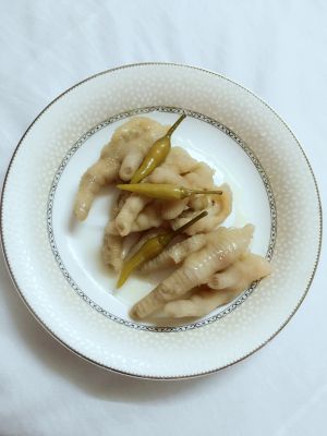 1:鸡爪洗净,煮5分钟洗去血沫再放水加适量料酒煮15分钟,洗净切好晾凉(一定要洗干净放凉透哦)。