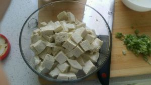 猪肉剁成末,豆腐切成小正方形(豆腐忘记拍图了)