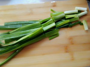 蒜苗切成小段,备用。
