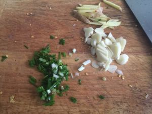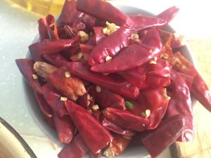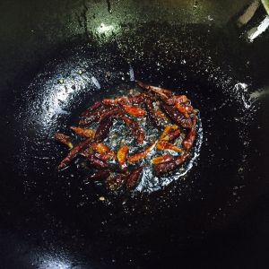 从新起锅 加入适量油 加入花椒 葱 姜 蒜 干辣椒 爆香