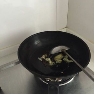炒出辣椒和花椒的香味后倒入葱姜蒜,同样炒出香味
