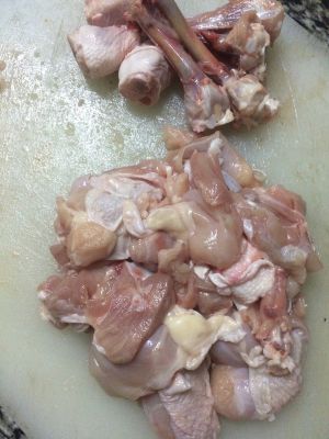 先处理琵琶腿,肉和骨头分离,分离的肉切成丁