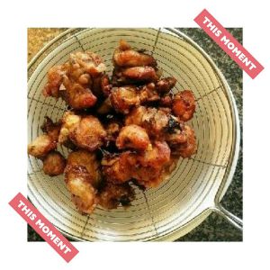 起锅热油把鸡肉炸制金黄,捞出在复炸一遍,沥油。