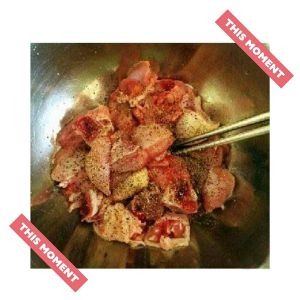 土鸡剁成大一点的块,拿盐水浸泡血水,冲洗干净后控干水份,放盐 料酒 生抽 胡椒粉 姜片 葱段 搅拌均匀,味道可以略重一点,放冰箱腌制隔夜。至少也要腌六个小时以上,不然不入味。所以可以提前一天腌好。
