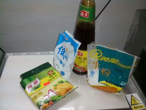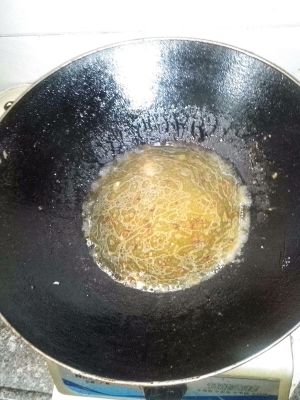 加入两碗水烧开1分钟,放入耗油(适量)盐(适量)鸡精(适量)煮一分钟後加入辣椒油(4汤匙)煮2分钟