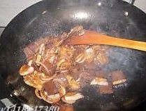 放一点生抽一点老抽一点点水稍微煮一下,水煮干以后乘出来备用。