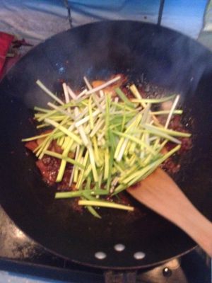 最后放入青红掓炒到断生,根据个人口味加入适量盐起锅