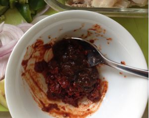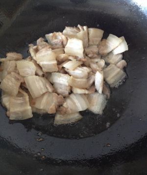 锅内放少许油,把煮熟的五花肉下锅,炒到那个肥肉变色,然后加入郫县豆瓣酱,炒出红油。