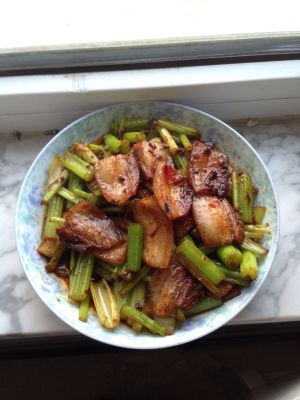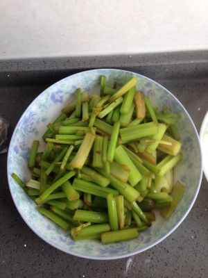 芹菜,洗净切断,然后炒熟。盛出备用。