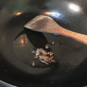 热油放花椒大料出味儿(少量油,五花肉很容易出油)
