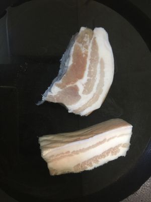 切了半条肉……感觉倒点黄酒、酱油,放上姜和葱,上锅蒸,就是个扣肉。
