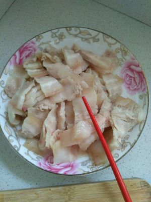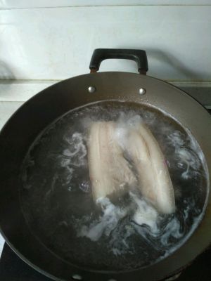 回锅肉冷水入锅煮熟,用筷子插一下,能一插到底就可以,别煮太久
