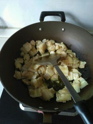 锅中倒油,放入提前煮好的五花肉扁香盛出备用。