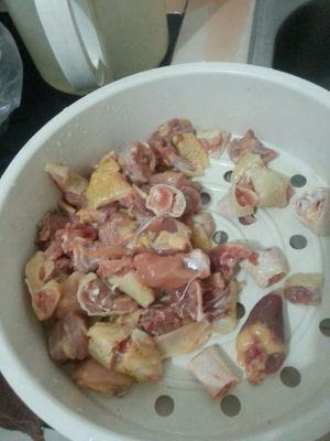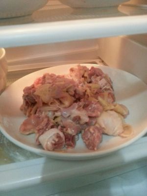 琵琶腿3个,(一般2个就可以做一盘菜了,家人都喜欢就多来点料,呵呵)洗净去骨,切成2厘米左右见方的肉块,肉炸完会缩小,不建议切太小哈。