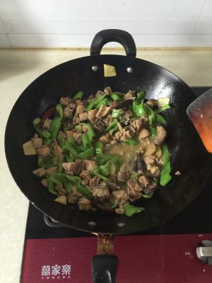 倒入鸡块,继续翻炒入味加鸡精或少许味精翻炒出锅。