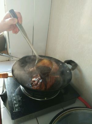 步骤8 倒入4大勺生抽,开大火收汁直至汤汁变浓稠