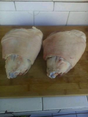 将肘子轻轻盛在盘中,原汤浇在肘子上。