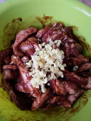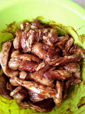 腌制好的肉里面拌入蒸肉粉,如果觉得干可以加点凉开水!