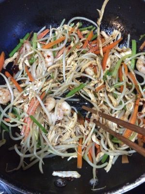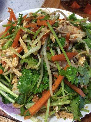 喜欢的蔬菜烫熟~我用了芹菜胡萝卜豆芽~哈哈还加了虾仁