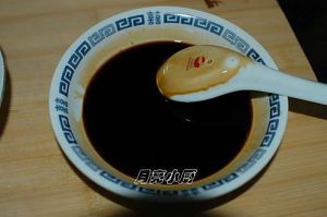 准备一个容器,放入一汤匙老抽,一汤匙生抽,一点点盐,一汤匙糖,料酒一瓶盖,拌匀.