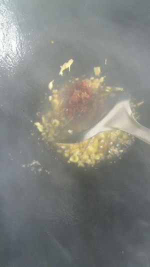 锅里再倒入油放入姜蒜末扁香,再放入剁椒翻炒