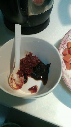 将之前的鸡油放入锅里小火煸炒出油,将油渣扔掉。