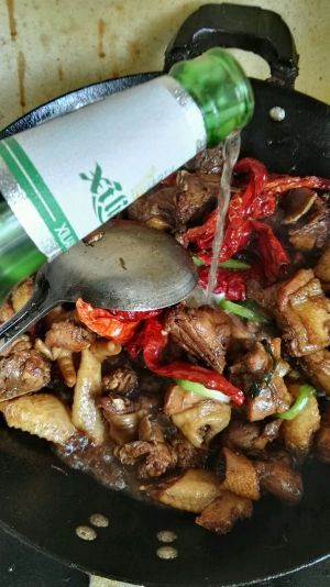 加入啤酒,炖四十分钟左右。(如果是土鸡,直接移驾至高压锅吧)